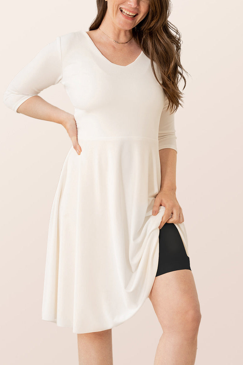 We don’t choose pieces from a spreadsheet. We choose them the hands-on way: checking the fabric for stretch and softness, looking closely at seams and stitching, pulling on waistbands, testing how it moves, and making sure it feels right when you actually wear it.